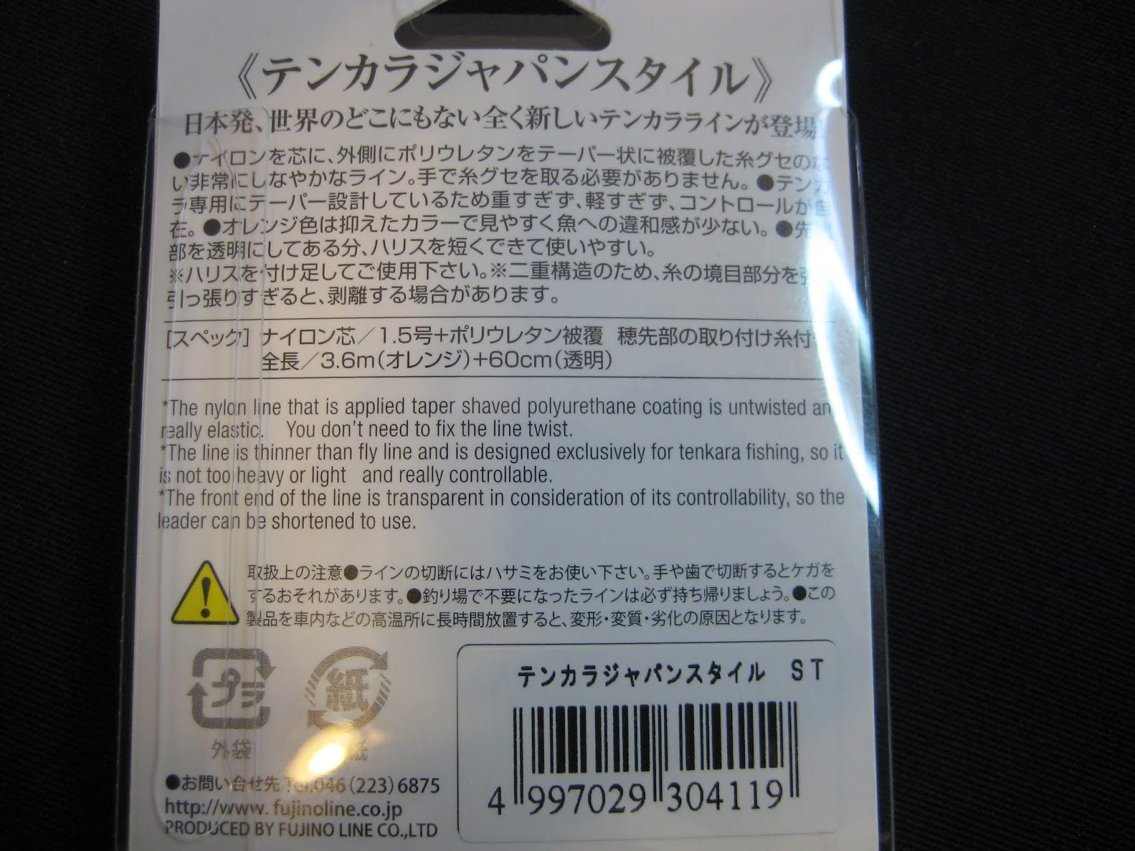 I'm pleased with the Fujino Line Tenkara Japan-style Standard 3.6m Tapered Line and I look forward to using it with 6X tippet and #18-20 BWO emergers, as soon as my streams thaw enough to let Baetis mayflies hatch!
