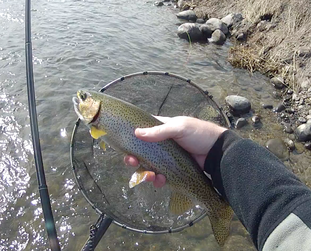 Fishing Henry's Fork. I live a stones throw away from the world famous Henry's Fork. I don't fish it much, as it's not my kind of water. But every once and a while it makes for a fun outing, especially in winter. I remember one such outing many years ago where I went in winter and fished just downstream from the Warm River confluence. There were other people there but they were all fishing western style with indicators and nymphs. Nobody was having much success. I was able to get into a nice pod of fish and took many over a half an hour. The fish were strong and fun on my fixed line rod. An Idaho F&G officer came over to see what I was doing to catch the fish (and to check my license). We had a nice discussion regarding tenkara.